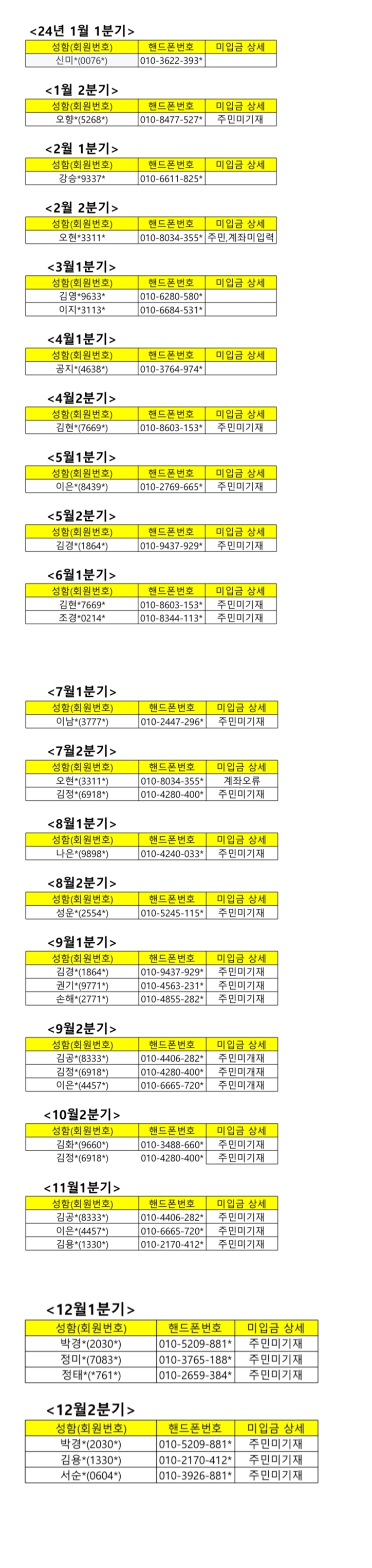 *수정완료 확인후 수당 지급된 분들은 표에서 바로 삭제됩니다 * 수당 당일 오전 11시 이후 개인정보 입력시 일괄적으로 다음 분기급때 수당입금됩니다*